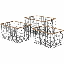Deals 🎁 Baum Essex Jute Rim Fold Down Ear Handles Grid Wire Baskets 2 Pc. 💯