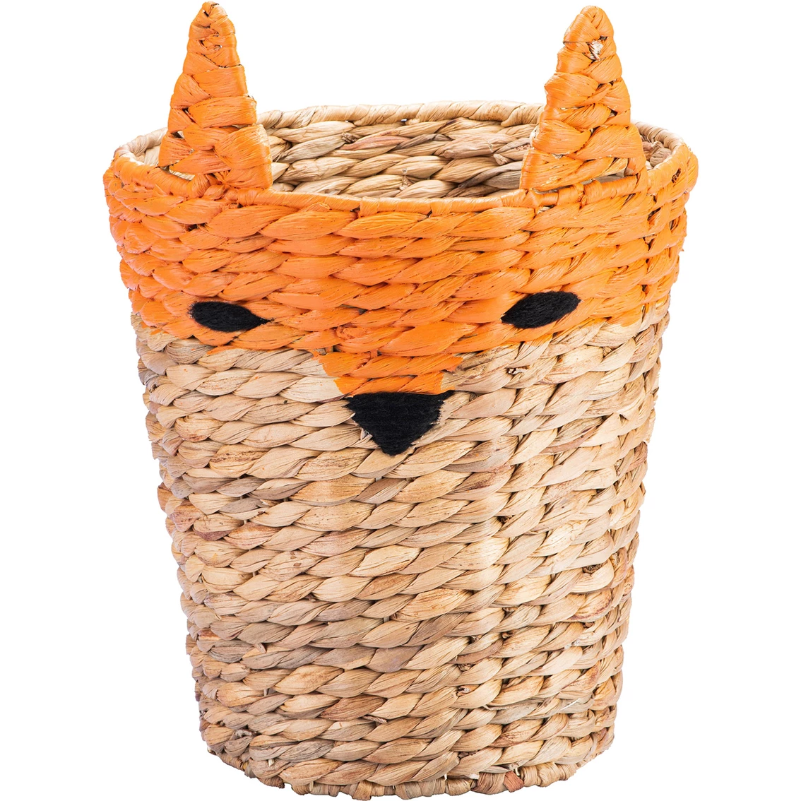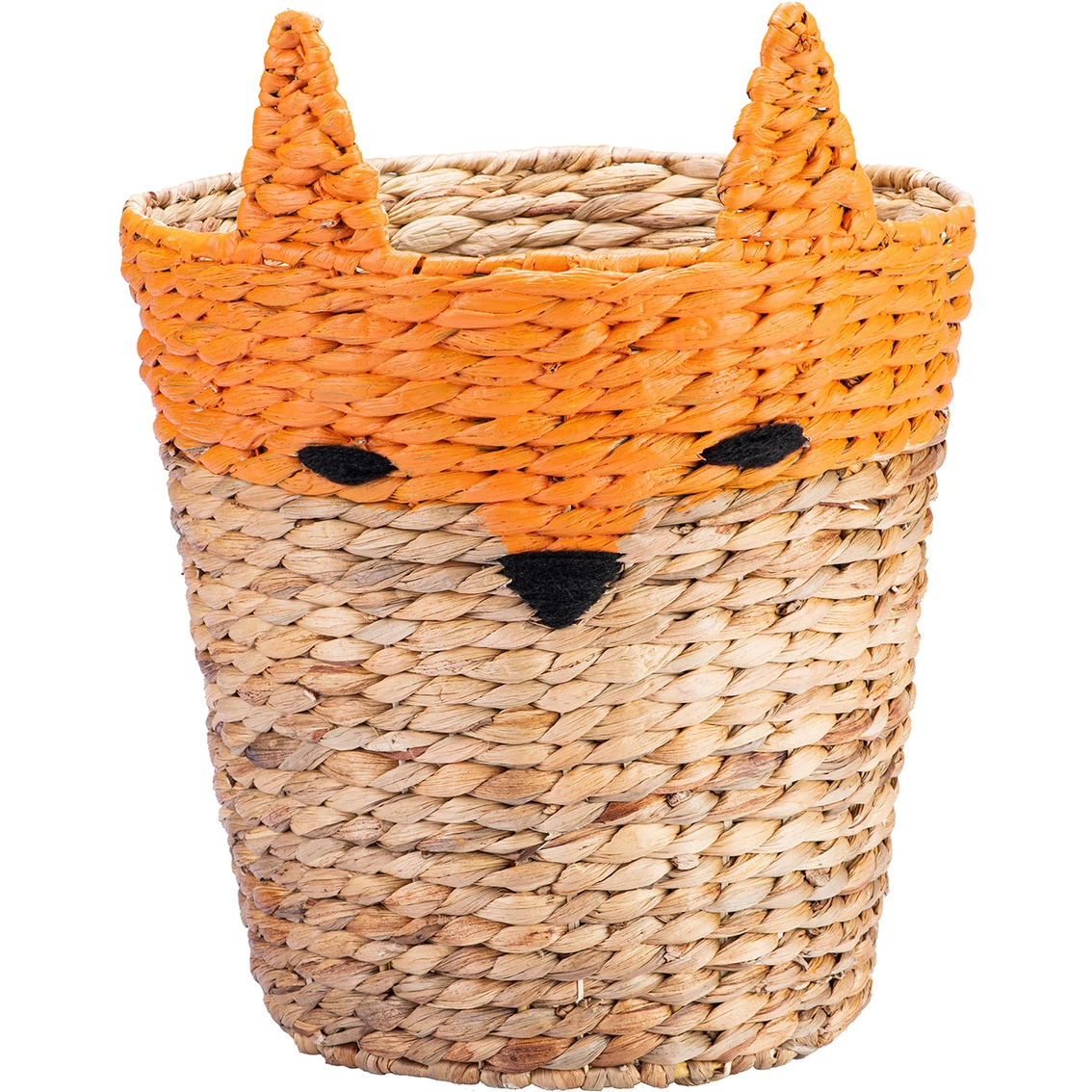 Welcome some whimsy into your home with this fun-faced set of two Round Fox Baskets from Baum Essex. The natural shade of the durable water hyacinth makes this set suitable for every season and nearly every room in your home. Designed with adorable fox faces, this set of two storage baskets offers a playful solution for keeping items throughout the home organized and out of sight. The dimensions of the set of two fox baskets are as follows: Bin – 12.2 in. Dia x 12.2 in. H (15.4 in. TH) and Waste Basket – 9.8 in. Dia x 10.6 in. H (13.8 in. TH). Model: 21A347.