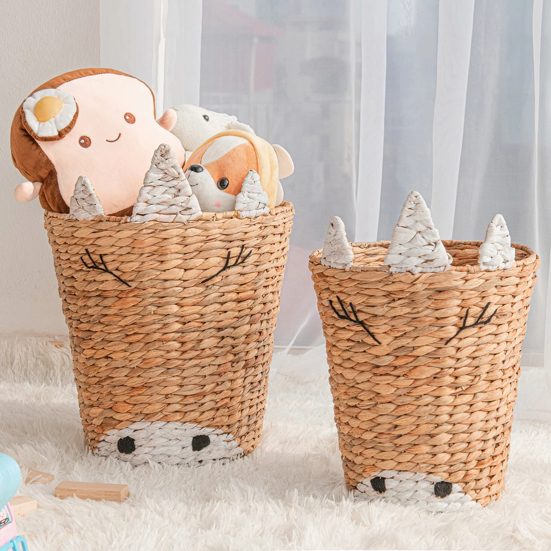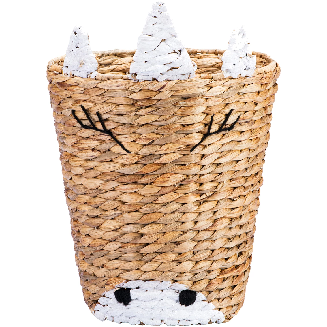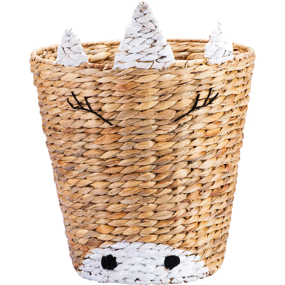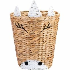 Welcome some whimsy into your home with this fun-faced set of two Round Unicorn Baskets from Baum Essex. The natural shade of the durable water hyacinth makes this set suitable for every season and nearly every room in your home. Designed with magical unicorn faces, this set of two storage baskets offers a playful solution for keeping items throughout the home organized and out of sight. The dimensions of the set of two unicorn baskets are as follows: Bin – 12.2 in. Dia x 12.2 in. H (15.4 in. TH) and Waste Basket – 9.8 in. Dia x 10.6 in. H (14.6 in. TH). Model: 21A348.