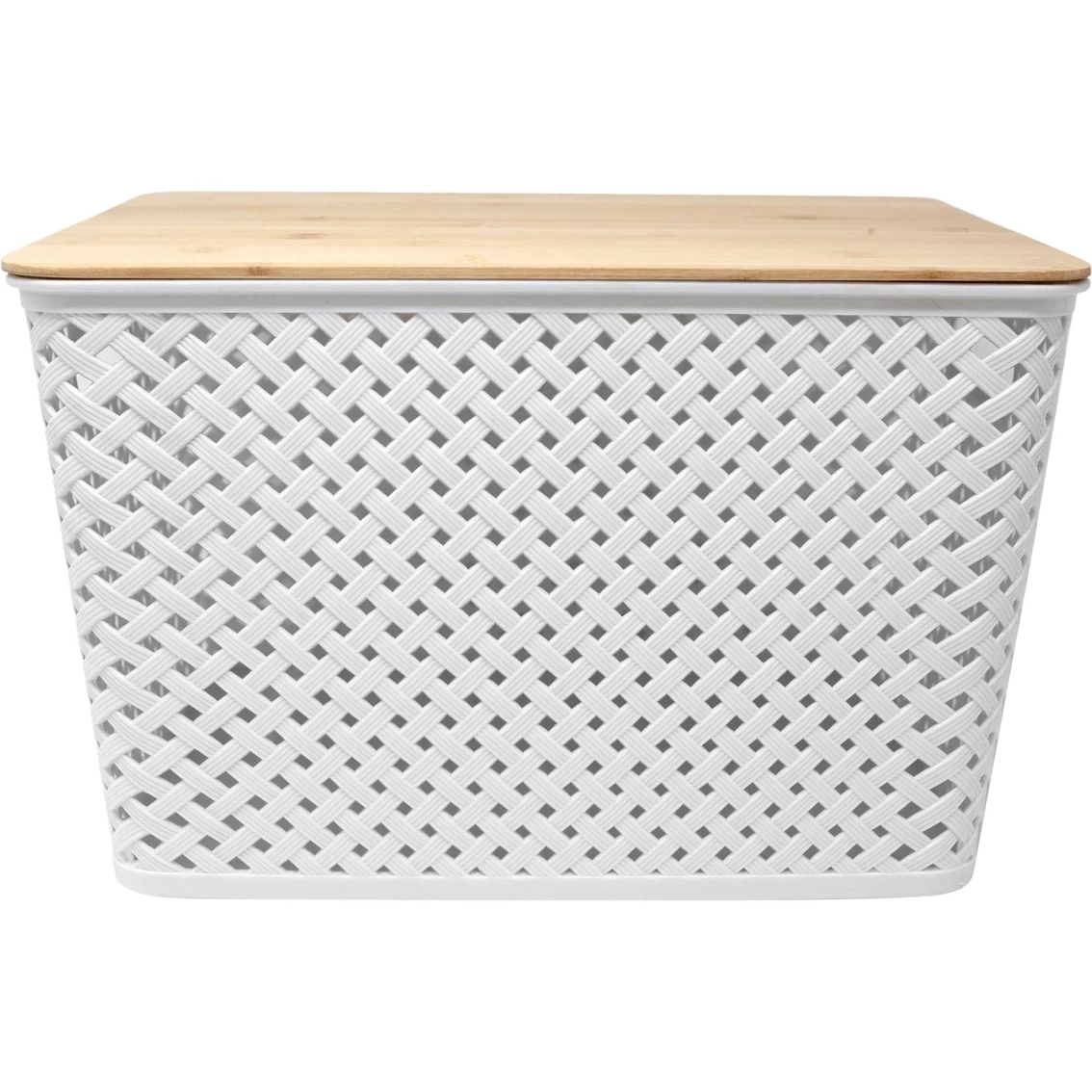 Blue Harbor 13 x 11 x 8 Plastic Tote with Bamboo Lid. Model: 37716.