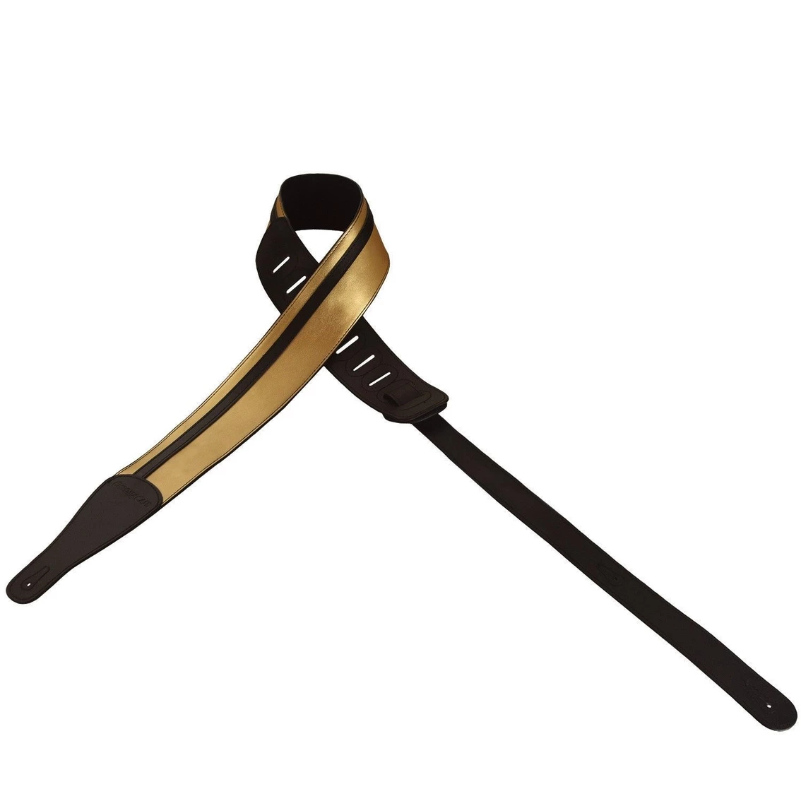 Best deal 🤩 ChromaCast Leather Racing Stripe Guitar Strap With Suede Back, Gold W/ Black 👍