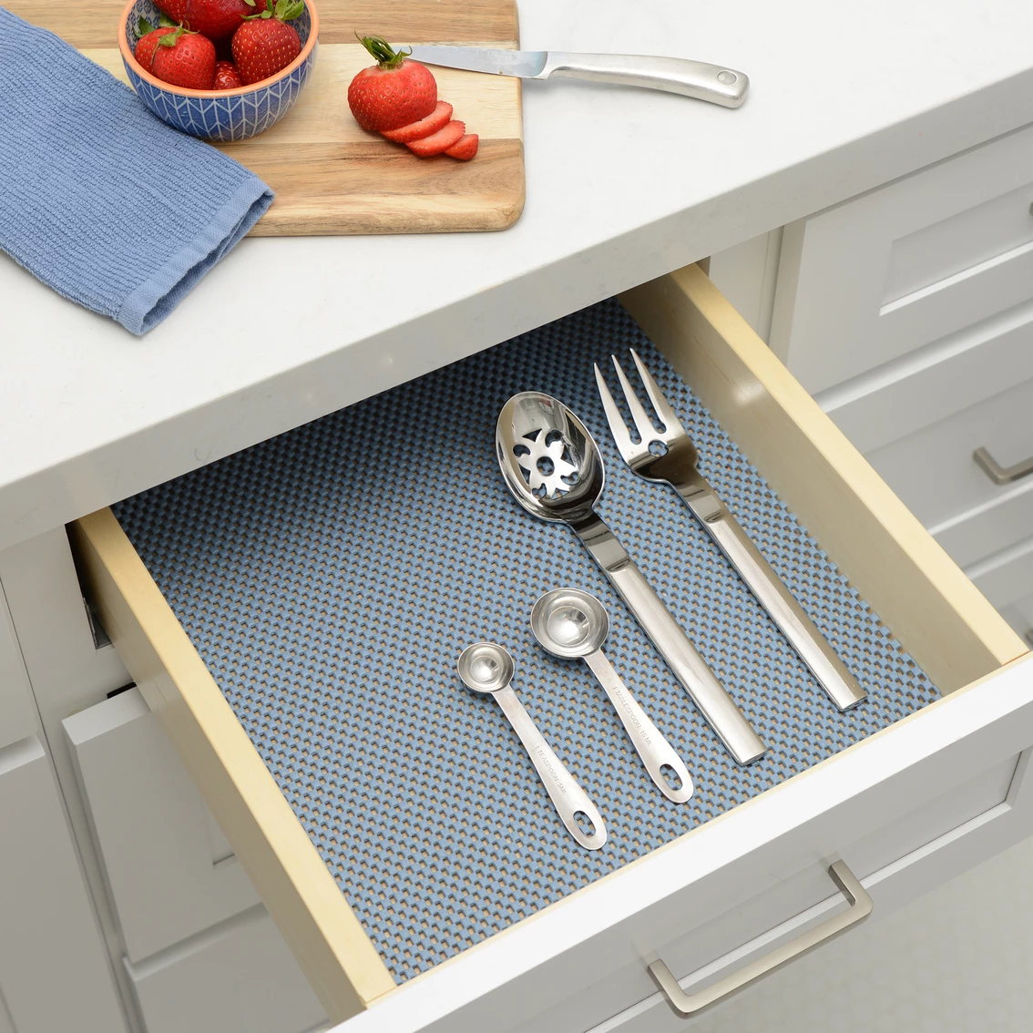 Grip Premium Liners are made from a compound designed for its non-slip properties! It helps keep your utensils, dishware and silverware to stay in place in your drawers and shelves. Plus, its strong grip reduces shifting so your fragile items won’t get damaged. With little to no effort our liners can be easily cut into any universal fit and installed in any drawer or shelf with ease. Simply position the liner into the area that you want to protect and cut off any excess material with household scissors and done!