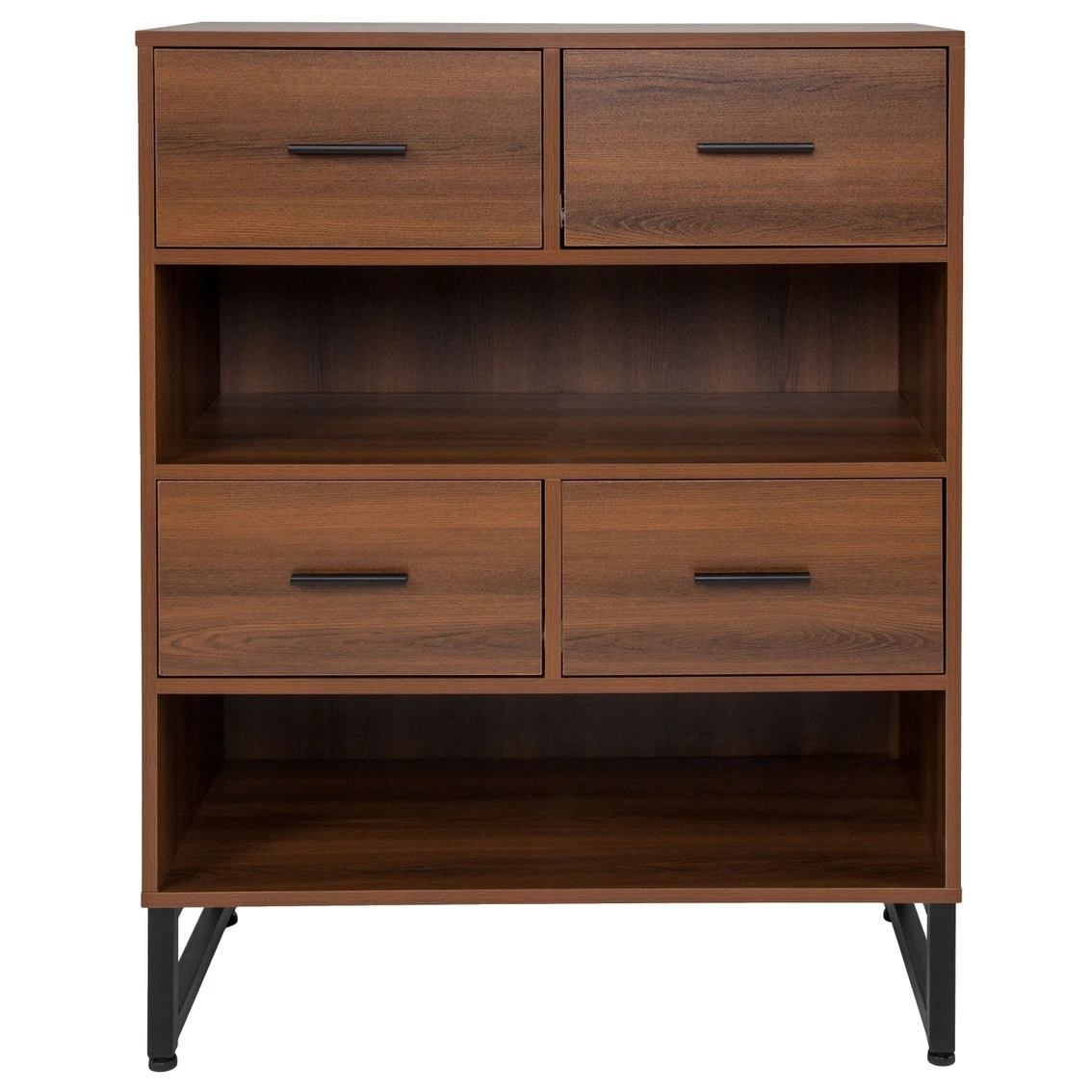 Raise the standards of your living room or home office with this clever looking storage bookshelf/chest. This modern display shelf offers open storage with lot of drawers. This unit can be used in the hallway, living room, bedroom or home office to satisfy all of your storage needs. The frame shows off the unique rustic finish, which is a chic addition with its contemporary and industrial style. Allow this functional, yet versatile bookshelf to work for you.