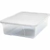 Homz 12 qt. Snaplock clear storage container is designed with the user in mind, featuring easy-grip handles for convenient transporting. Bin is ideal for organizing and storing at home, office or dorm room — perfect for items such as blankets, pillows and other household items. The transparent style allows you to easily keep track of all contents from any side. The Homz storage lid snaps securely onto the base to form a tight seal so your items stay safe, clean and dry. Stack multiple bins in your closet or on a shelf to maximize vertical organization. You can also nestle containers inside of one another to maximize storage space when not in use.