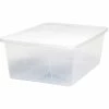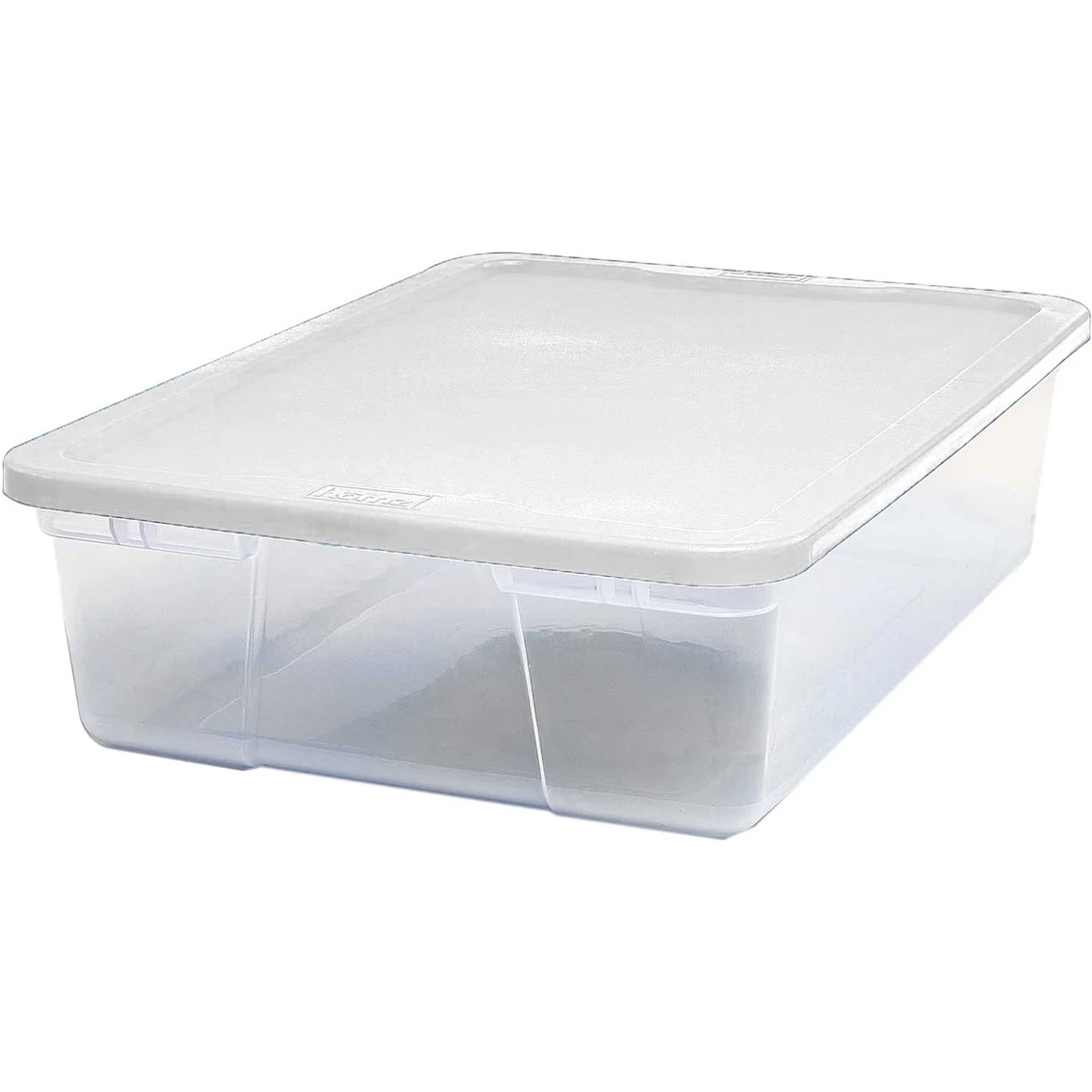 Homz 28 qt. Snaplock clear storage container is designed with the user in mind, featuring easy-grip handles for convenient transporting. Bin is ideal for organizing and storing at home, office or dorm room — perfect for items such as blankets, pillows and other large household items. The transparent style allows you to easily keep track of all contents from any side. The Homz storage lid snaps securely onto the base to form a tight seal so your items stay safe, clean and dry. Stack multiple bins in your closet or on a shelf to maximize vertical organization. You can also nestle containers inside of one another to maximize storage space when not in use