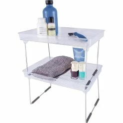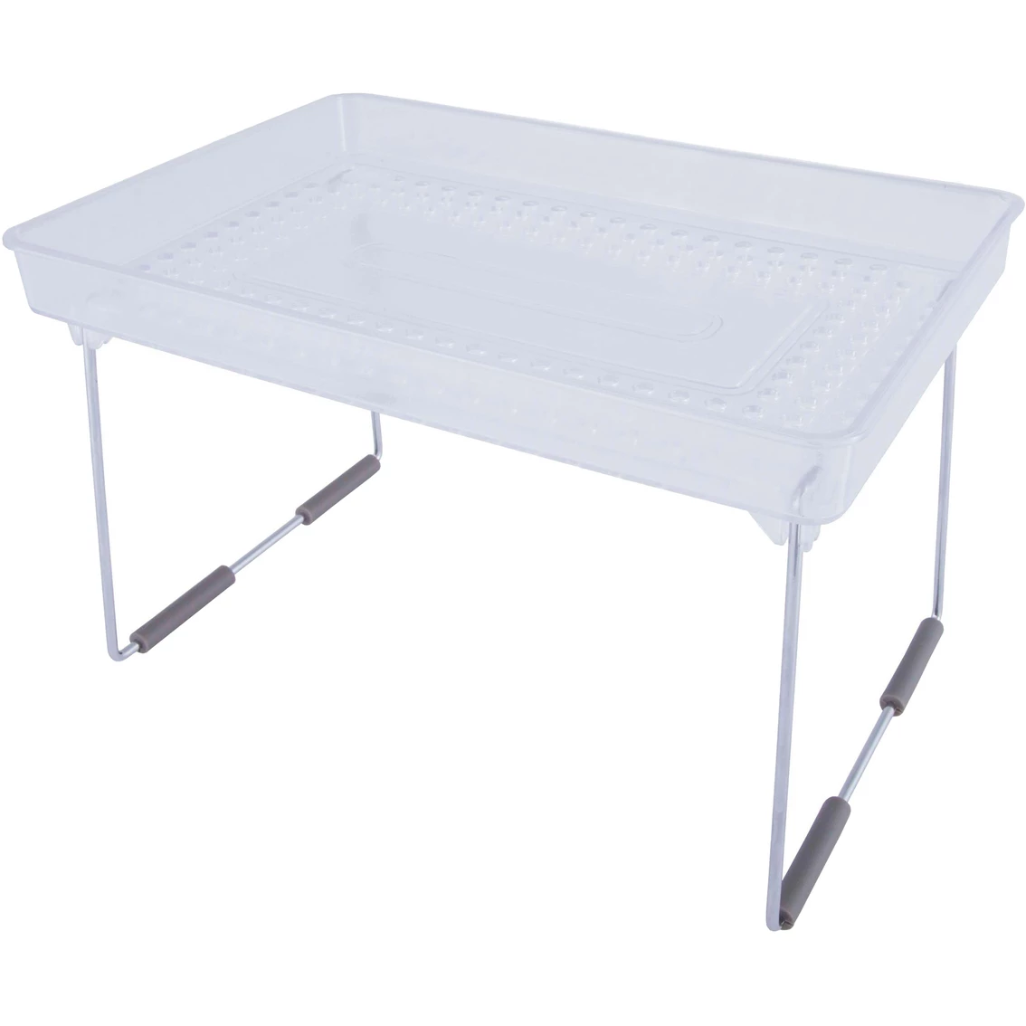 The Storage Made Simple Collapsible Stacking Countertop Shelf from Kenney is an ideal solution for countertop organization. Two wire legs fold out from the base and covert into a shelf. The legs fold back into the base for easy storage when not in use. Stack multiple shelves on top of each other to create customized tiered storage. Non-skid pads help keep the organizer in place on your counter. This Storage Made Simple Countertop Collapsing Stackable Shelf measures 11.5 in. L x 7.7 in. D x 7.1 in. H.