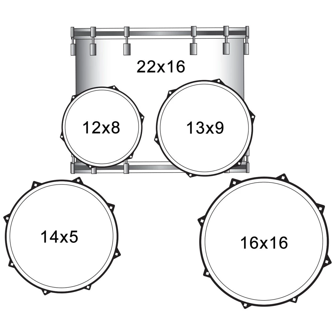 High Quality Poplar 22×16 Bass Drum, 12×8 & 13×9 Toms, 16×16 Floor Tom, 14×5 Snare Drum