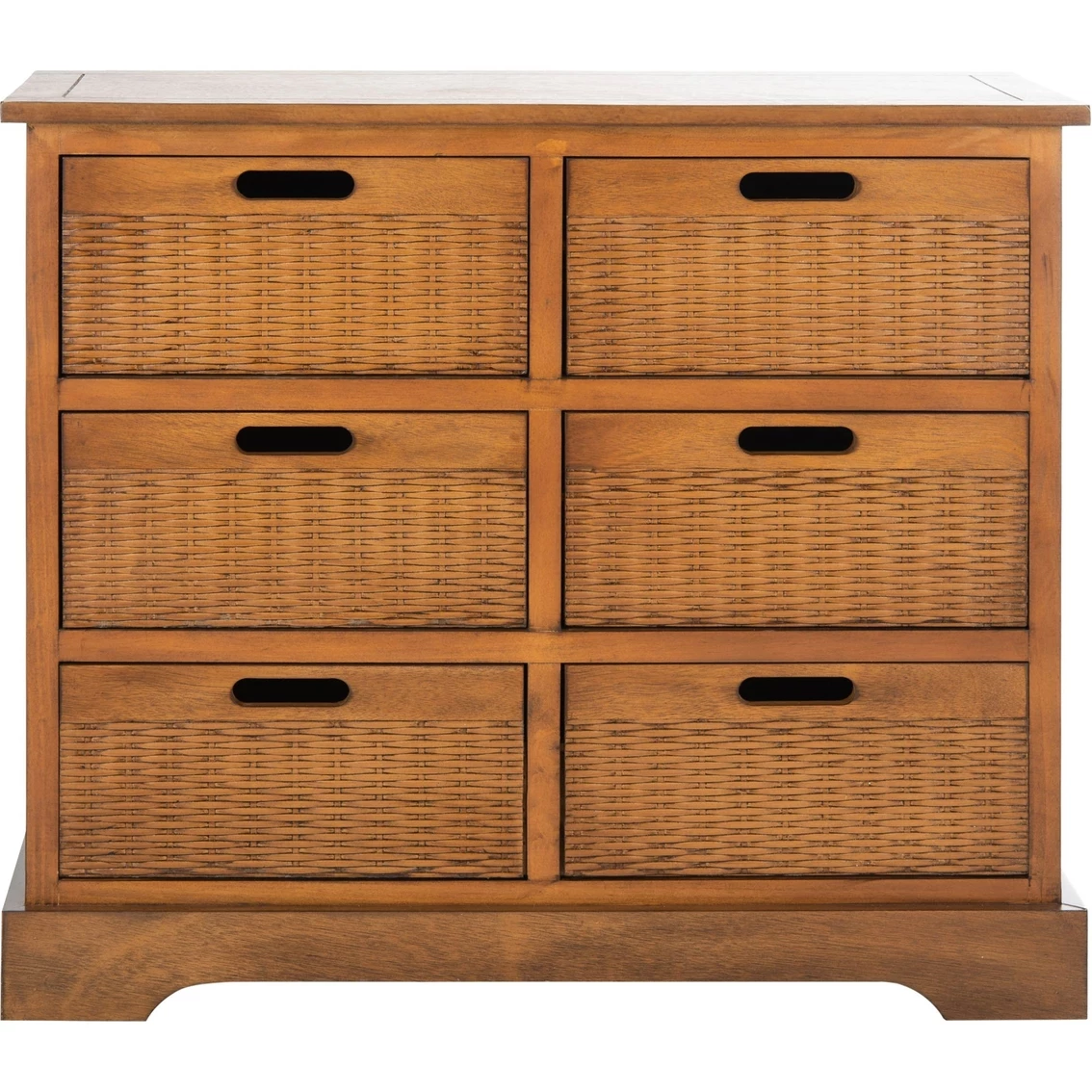 Never sacrifice storage for style with this Landers Storage Unit. A creative combination of classic contemporary chic and warm farmhouse charm, Landers timeless silhouette is given a modern update with a honey brown finish that pairs beautifully with its six spacious basket drawers. Model: STG5700C.
