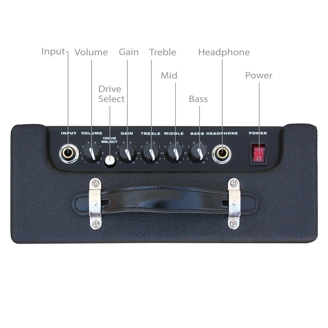 Controls: Volume, Gain, Drive; Master EQ: Treble, Middle, Bass