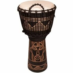 Unleash the passion inside you with Sawtooths Harmony Series Cajons and Djembes! The Harmony Series was developed to accentuate the harmony between body and spirit, and add another level of artistic expression to your performance. The spirit is a symbol of our soul, or the essence of our person, which is why this is one of the images chosen to adorn the Sawtooth Harmony Series. In most traditional African cultures, the person who wears a ritual mask conceptually loses his or her human identity and turns into the spirit represented by the mask itself.Craftsmanship and playability is delivered with this wood Djembe. Perfect for drummers looking to diversify their playing styles, professional players, hobbyists, or students.