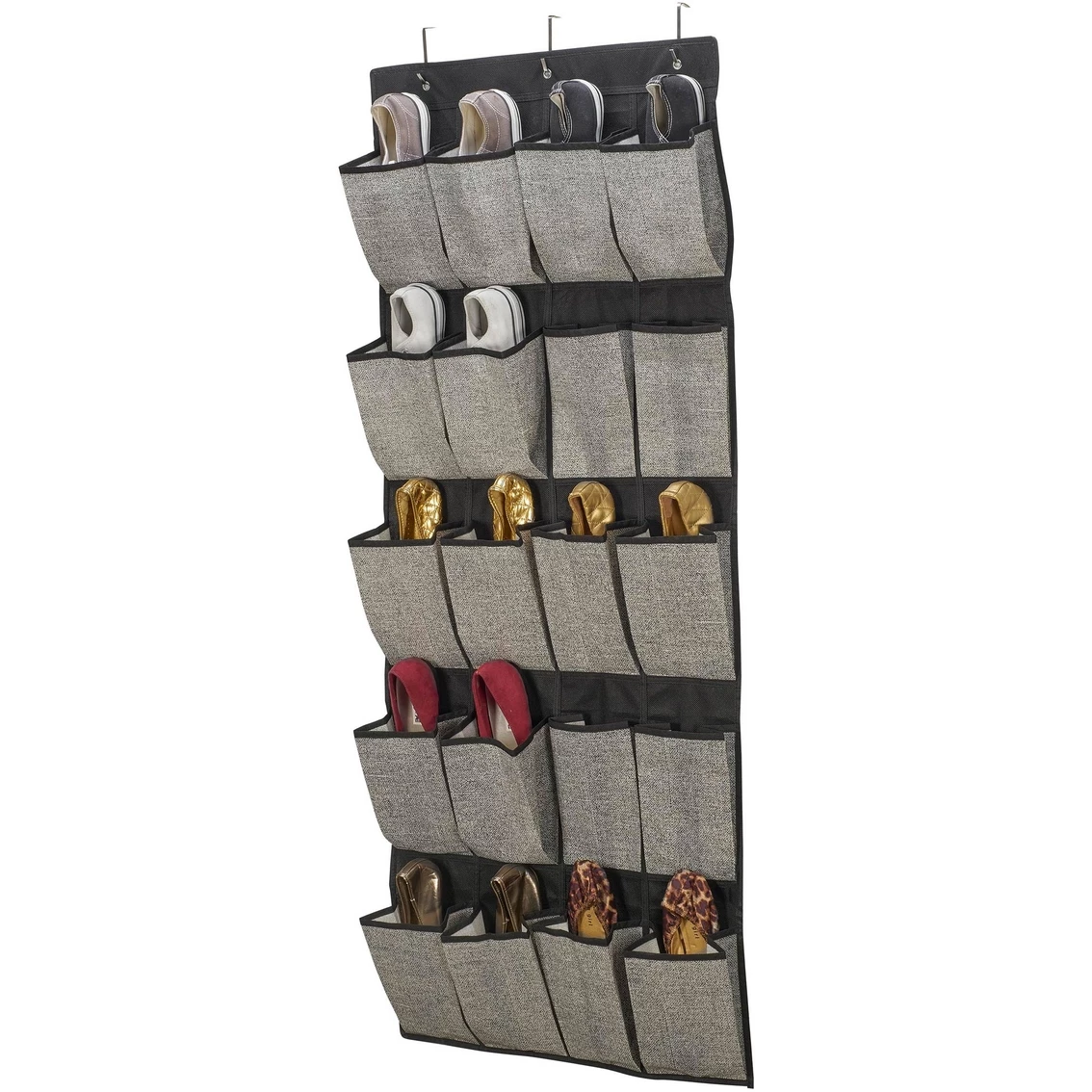 Simplify’s 20-Pocket Non-Woven Shoe Organizer is made of 100% non-woven breathable material that acts as instant organization for your closet or room. Can store shoes, slippers, belts, purses so much more. With 3 steel clips, it can hang on any door or closet, and when not in use it folds up as storage. Slim design gives easy access to stored items.