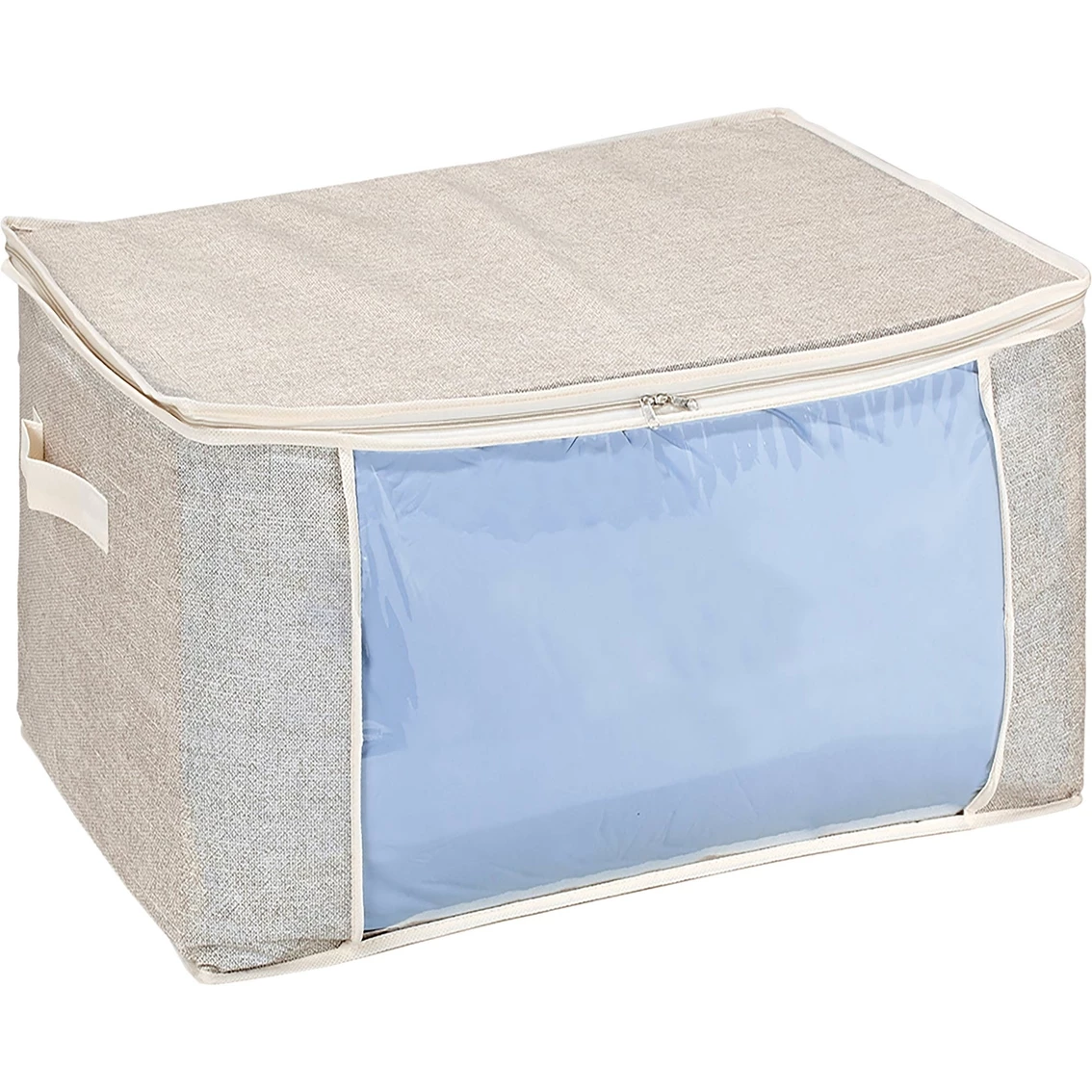 Simplify’s Non-Woven Blanket Bag is made of 100% non-woven breathable material that keeps your blankets and other belongings safe. Perfect storage solution for off-season items such as blankets, garments and more while also protecting them against dust and damage thanks to its full zippered top. Durable handles allow for easy carrying and see through window on front allows you to look inside of the bag. Bag helps eliminate odors to help linens stay fresh and clean. Flexible and adjustable design makes it easy to fit in tight spaces to store.