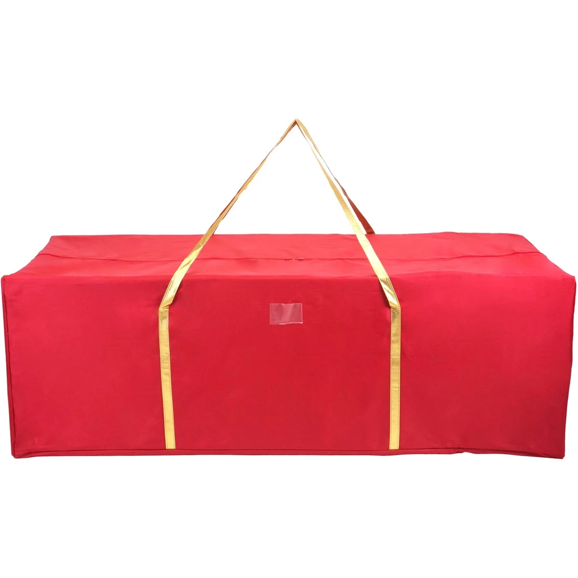 This Simplify Tree Storage Bag holds Christmas trees up to 9.5 ft. tall. Multiple reinforced handles make it easier to move around, no matter how heavy the tree. A built-in label holder identifies which tree belongs in the bag, how much the bag can hold, and more. The durable polyester bag is moisture, dust, dirt and pest resistant to keep the tree inside safe.