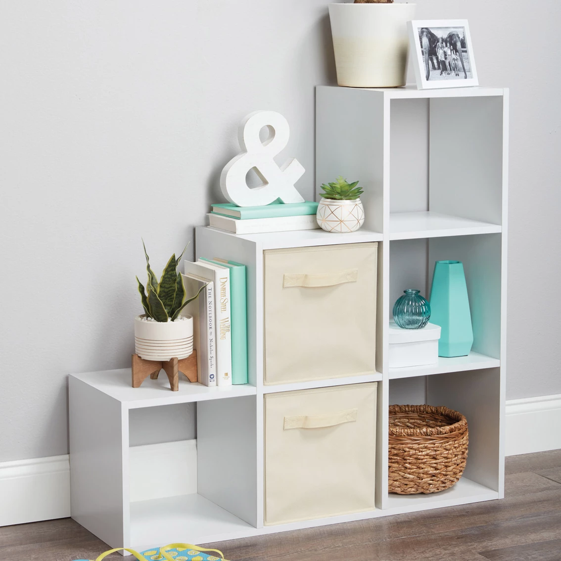 The Simply Perfect 11″ 3-2-1 Cube Organizer Shelf offers a convenient way to store shoes, hobbies, towels, utility room items and office supplies for any room in your home. Designed to work perfectly with 11″ cube fabric drawers. Easy to assemble.