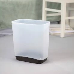 Designed with a slim, rectangular aesthetic this wastebasket features a space-saving profile, textured exterior and a color-accented base that adds a pop of color. As space continues to be a premium in the home, consumers look for solutions that fit comfortably in small spaces but still offer a sophisticated aesthetic. Model: 10393V06.