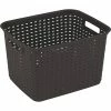 The styling of this Short Weave Basket from Sterilite complements all decor and is ideal for visible storage areas throughout the home. Basket combines style and function, the appearance of wicker with the convenience and durability of plastic, long lasting, easy to clean and snag-proof. Model: 12726P06.