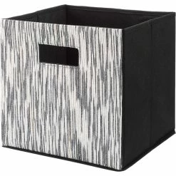 This space-dyed lurex storage cube from Whitmor is ideal for organizing toys, crafts, books, bedding and clothes. a child’s room, family room, laundry room, nursery and closet. The cube is collapsible for easy storing when not in use. Model: 5424-9974-PDQ.