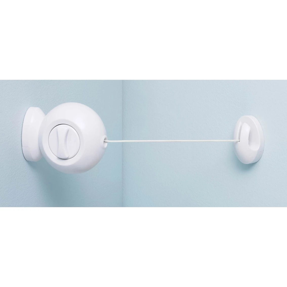 This easy-to-use retractable clothesline from Whitmor extends up to 12 feet and has a lock and unlock dial to keep clothesline in place. The compact design mounts discreetly on the wall easily with a hammer and Phillips screwdriver. The rust-proof retractable dryer is made of durable plastic casing and clothesline. For over 70 years, Whitmor has been bringing organization home. If you have questions or problems, please contact us for immediate assistance. Model: 6243-8741.