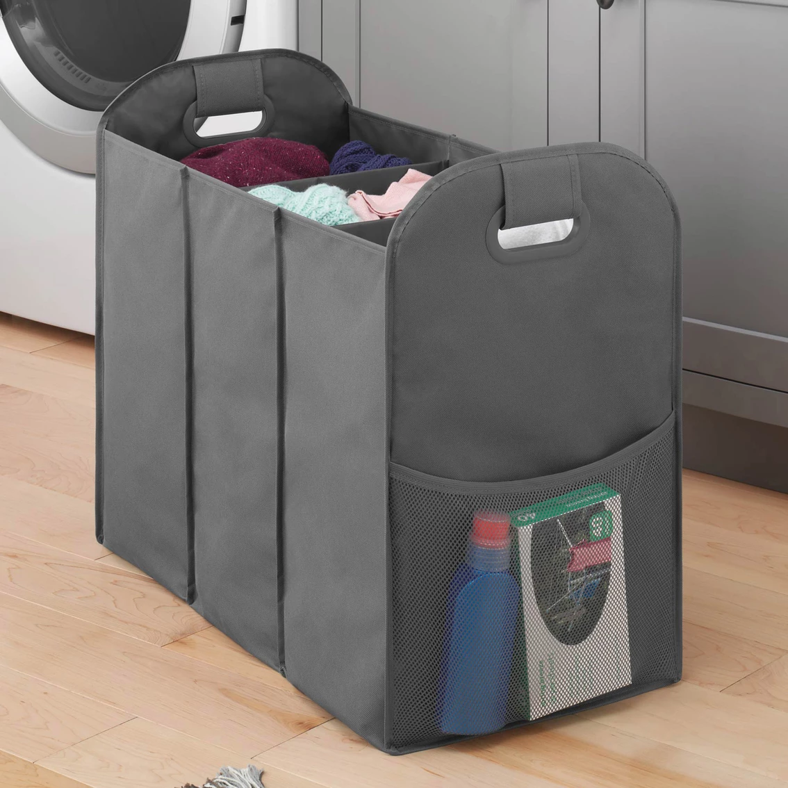 This Accordion Sorter from Whitmor has a three-section removable divider included and a side mesh pocket for extra storage. Also features reinforced padded handles for strength and comfort. The easy-to-transport accordion design is for easy expansion and storage. Model: 6266-7702-SAGRY.