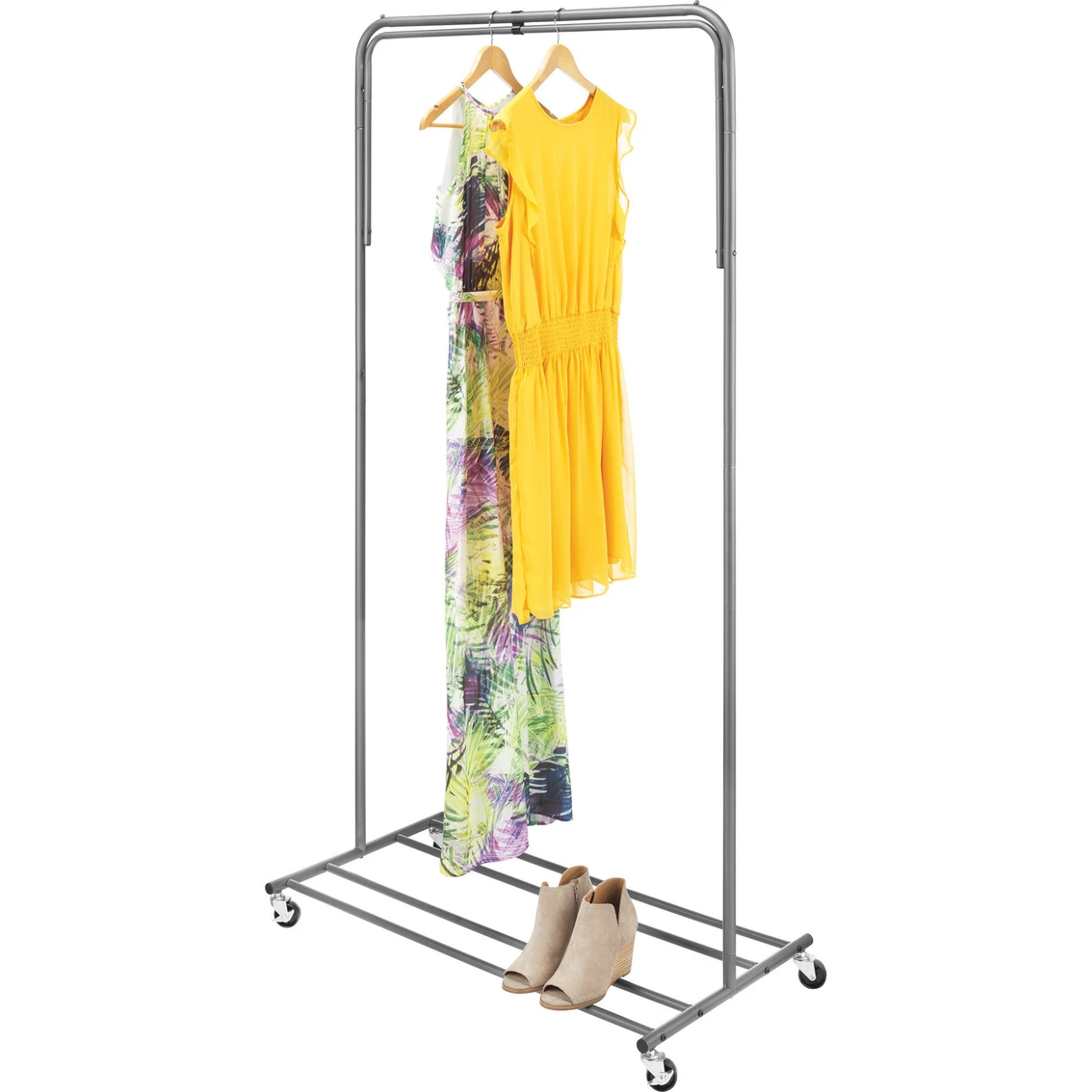 Whitmor’s Convertible Garment Rack lets you transform a single rod to a double rod garment rack in seconds. Includes wheels that allow you to move the garment rack when you need to, 2 wheels lock for added stability. Easy to care for, just wipe with a clean damp cloth to keep it looking as good as new for years to come. Assembly is easy with the tools included. Model: 6905-11988.