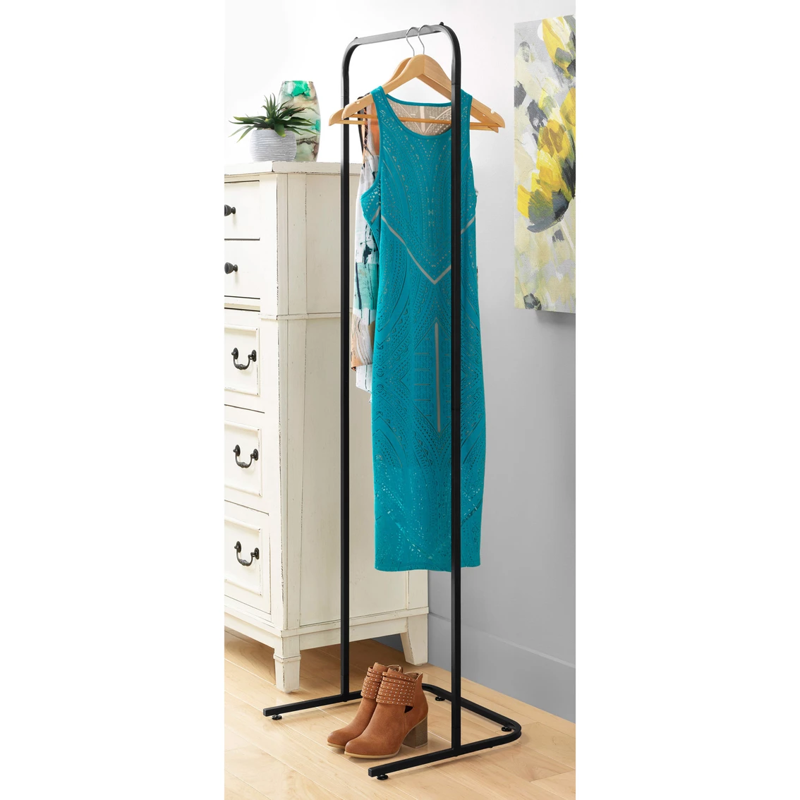 This budget-friendly garment rack from Whitmor is perfect for storing your extra hanging apparel. It is made of durable square steel tubing. This garment rack sports a curved top bar and stoppers on each side that prevents hanger slippage. It is perfect for use in spare rooms, attics, basements or anywhere in your home, office or dorm room. It’s easy to care for; just wipe with a clean damp cloth to keep it looking as good as new for years to come. It’s also easy to assemble. All you need is a Phillips screwdriver. Assembled dimensions: 20.25 x 18 x 66.25 in. Model: 6898-9609.